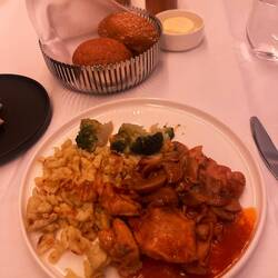 Bei der Essensbestellung wurden wir etwas enttäuscht, da es gleich drei Menüs nicht mehr gab, die wir eigentlich wollten. Luxus-Probleme, aber trotzdem etwas ärgerlich ;-)
