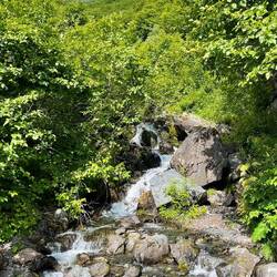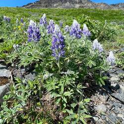 Wir beeilten uns, uns mit Wasser, Beef Jerkey und unserer Fotoausrüstung einzudecken und marschierten bald darauf los. Der Weg führte uns durch einen schönen Wald mit riesigen Blättern und Farn. Es ging mal angenehm gerade, mal ziemlich steil nach oben. Die Aussicht war teilweise einfach nur fantastisch! Ein superschöner Gletscher mit grossem Eisfeld, die schönsten Wildblumen, die ich je gesehen habe. Ich bin ja nicht Blumenfan, aber ich muss zugeben, in Seward ist die Blütenpracht einfach nur WUNDERSCHÖN! Ich kann auch keine der Blüten beim Namen nennen, aber das ist ja auch egal oder? Hauptsache schön :-) Violett, weiss, gelb, alles Mögliche.