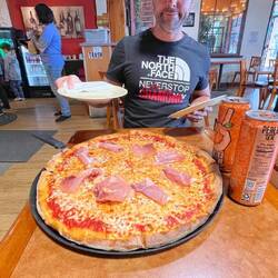 Glücklich fuhren wir los in Richtung Walmart, wo wir uns mit Proviant für die ersten Tage ausstatteten. Nach dem Einkauf gönnten wir uns eine grosse Pizza, in der Hoffnung, die nächsten Tage noch etwas zum Zmittag zu haben. Leider war Simi so hungrig, dass er beinahe die ganze gigantische Pizza alleine gegessen hat und nur noch ein Stück übrig blieb.