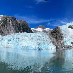 Auf dem Rückflug flog der Pilot uns noch über einen wunderschönen Gletscher, umgeben von tollen, hohen Bergen. Was für ein Anblick. Und dies genau dann, wenn ich keine Kamera dabei habe (war im Rucksack ganz hinten). Es war ein wirklich toller Rückflug!