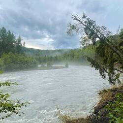 Nach einer seeeeehr langen Fahrt kamen wir schlussendlich doch noch beim Eagle River Campground an, wo wir einen der letzten zwei Plätze ergatterten. Leider wurden unsere Kreditkarten erneut abgelehnt. Simi wollte schon weiterfahren, ich wollte mein Glück beim Camphost versuchen. Er meinte, „egal, schon ok“. Er wollte nicht einmal unser Bargeld. Ok, auch gut ;-)