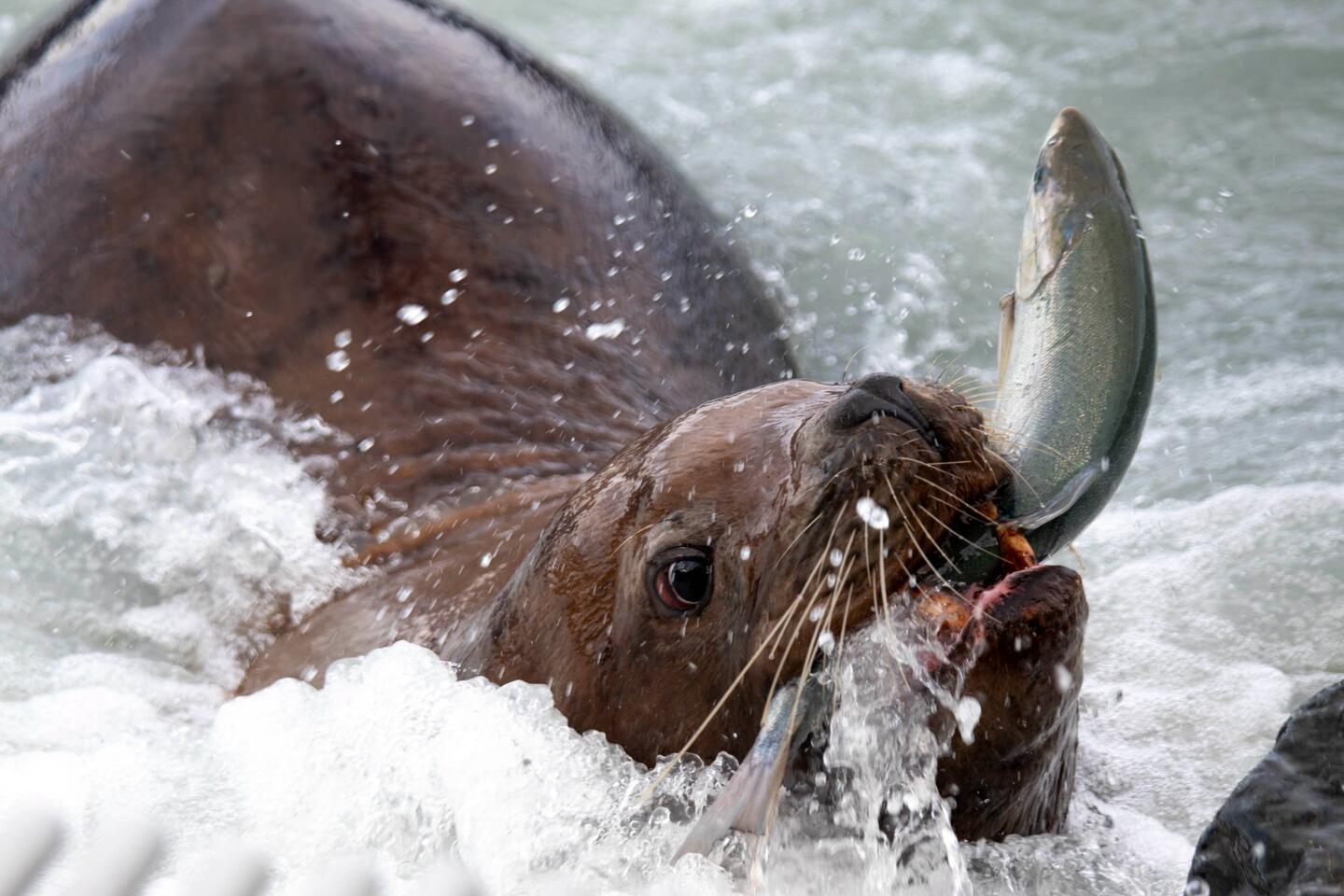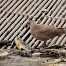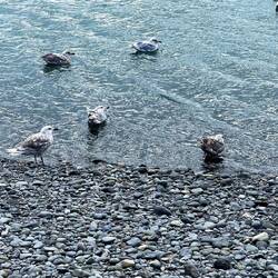 Wir fuhren durch schöne Landschaften und kamen irgendwann in Valdez bei der Lachs-Fang-Fabrik an. Es stank bestialisch und überall waren Möwen. Gleich bei der Fabrik tummelten sich zusätzlich Robben und gigantische Seelöwen. Die Dinger sind einfach nur RIESIG und stopften sich einen fetten Lachs nach dem anderen in den Magen. Ich schätze, so ein Lachs wiegt sicher um die 6kg.. kein Wunder sind diese Seelöwen so fett.