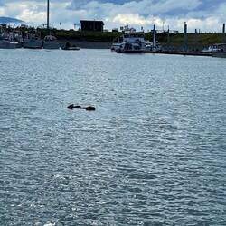 Nach dem Essen spazierten wir den ganzen Homer Spit entlang. Zuerst dem offenen Meer entlang, dann dem Hafen. Plötzlich sah ich in der Ferne etwas Grosses, Dickes im Wasser: OOOOTTTER :-D