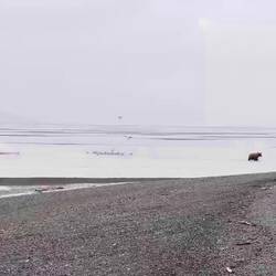 Leider zogen die Bären weiter. Wir stampften zurück ans Ufer, wo wir noch ein paar Meter umhergingen. Die Bären kamen leider nicht mehr zurück. Der Guide entschloss zurückzufliegen. Ich war leicht geschockt, da wir erst so kurz vorher angekommen waren. Zunächst hatte ich die Hoffnung, dass wir noch an einen anderen Ort fliegen würden, leider nein.