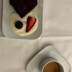 Auch das Essen war sensationell gut. Ich bestellte die Fischversion. Bei der Vorspeise waren die Algen auf dem Fisch nicht so meins. Meine Bemerkung war „Das schmeckt, als würde ich einen Strand bei Ebbe essen!“, aber die Hauptspeise.. ein Traum. Schwarzer Reis mit einer Sauce mit Zitronennote und dazu etwas Gemüse und leicht scharfe Shrimps. Zum Dessert ein Brownie.