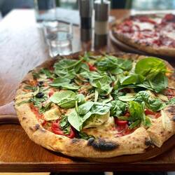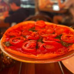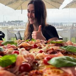 Das späte Mittagessen war lecker. Bruschetta und dann Pizza Margaritha bzw. Salami für Simi. Und das Ganze für CHF 30.00 - Schnäppchen