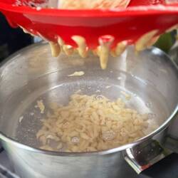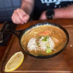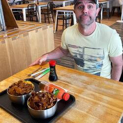Unser erster Stop war Woolworth in der Nähe des Flughafens, wo wir uns eindeckten mit Essen, Getränken und, wie immer, mit einer neuen Bratpfanne. Da wir nicht gefrühstückt hatten, setzten wir uns anschliessend in einen kleinen China-Imbiss, wo wir je eine riesige Schale voller Nudeln und Fleisch assen. Ich hätte mich besser für Dumplings entscheiden sollen, aber ich sah leider erst später, wie lecker die aussahen. Unsere Schüssel war auch sehr gut, aber auch sehr viel.