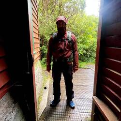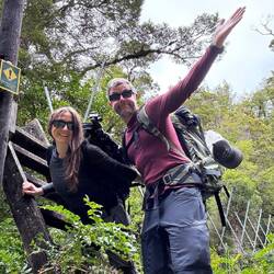 Wir assen gemütlich unsere Sandwiches und wanderten dann zurück. Kurz bevor der Falke kam, bewaffneten wir uns wieder mit dem Stativ. Wir hatten Glück und er war ausgeflogen oder hatte uns nicht so früh oder an der Stelle erwartet. Der Falke war nirgendwo zu sehen. Die Drahtseil-Brücke schafften wir auch beide problemlos und auch die schlammigen Stellen konnten uns nicht in ihre Tiefen ziehen.