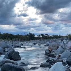 Ein Blick nach draussen zeigte wolkenverhangene Hügel, aber glücklicherweise kein Regen. Wir beschlossen, ausnahmsweise bei unserem Plan zu bleiben und entweder die Hut Creek oder die Mistake Creek Wanderung zu machen.