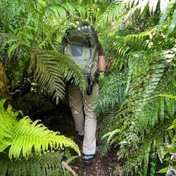 Der Weg wurde immer enger und wir mussten uns durch die grossen Farne kämpfen. In etwa so musste sich Indiana Jones gefühlt haben, als er durch den Jungle lief :-P Ich fand es toll, ich mag Regenwälder mit all ihren Düften und Geräuschen weiterhin sehr, Simi war gespaltener Meinung.