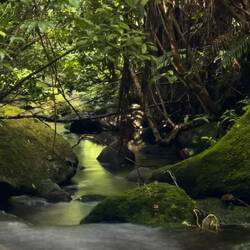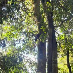 Als wir am Campingplatz ankamen, stellten wir fest, dass ein Weg nicht mehr vorhanden war, da ein Bauer alles für seine Kühe umzäunt hatte. Also machten wir uns auf den längeren Weg, wo man grundsätzlich ebenfalls zum Fluss gelangen sollte. Er führte uns wiederum durch einen sehr, sehr tollen Regenwald. Er war irgendwie etwas anders, als die bisherigen. Es gab viele Lianen, die alles umschlungen und einfach überall waren, das hatten wir bisher noch nicht gesehen. Unglücklicherweise waren wir etwas in Eile und konnten die Umgebung viel zu wenig geniessen. Man hörte wieder die lustigen Vogelgesänge und irgendwo hörte man plötzlich das lieblichste Gezwitscher, das ich je gehört hatte. Eine schier unaufhörliche Melodie. Genau als ich es zur Erinnerung aufnehmen wollte, hörte der Vogel jedoch auf. Echt schade, sowas habe ich mein ganzes Leben lang noch nicht gehört. Es gibt hier viele schöne Vogelgesänge, aber dieser war einzigartig!