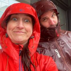 Wir hatten gerade das Essen in die Teller geschöpft, als es aufhörte zu regnen und wir einen winzigen Hoffnungsschimmer auf einen guten Sonnenuntergang hatten. Wir schaufelten das Essen direkt zurück in die Pfanne, zogen unsere Regenkleidung an, packten unsere Rucksäcke und marschierten im Eilzugstempo los.