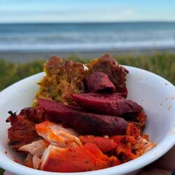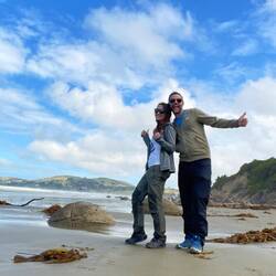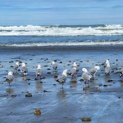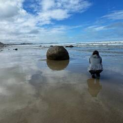 In Ashburton holten wir das vorbestellte Essen ab und fuhren hinunter zum Strand. Dort angekommen stürzten wir uns aufs Essen und genossen dabei den schönen Blick aufs Meer. Herrlich! Die lange Fahrt war echt mühsam, aber das Essen war einfach nur mjaaammmi und ich wurde mit meiner geliebten Meersicht entschädigt.