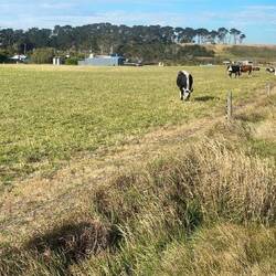Wir marschierten zurück zum Camper, wo wir versuchten, einen Weg durch die Weide zu finden. Die Kühe konnten da gar nicht hingelangen. Es gab nämlich extra eine Hilfe, um über Zaun 1 zu kommen, was wir als „da darf man also immer noch durch“ werteten. Zaun 2 stand unter Strom und wir konnten keinen Ort finden, wo man diesen öffnen konnte. Dann passierte etwas Witziges. Eine Kuh im eingezäunten Bereich machte ein kurzes „Muh“, was definitiv als „Kommt alle her! Schaut euch das an!“ interpretiert werden muss.