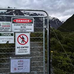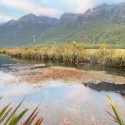 Irgendwann erreichten wir endlich Fox Glacier, wo es ein Verbot nach dem anderen gab. Wir liefen schnell einmal um den Lake Matheson, der leider bei dieser Tageszeit nicht so schön still war, als dass sich etwas gespiegelt hätte. Zudem waren neue Wolken aufgezogen, die den Blick auf die umliegenden Berge versperrten.