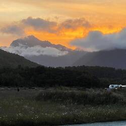 Irgendwann gab es als spätes und hastiges Mittagessen Instant-Noodles und wir wechselten daraufhin die Sitzplätze. Meine Fahrt begann mühselig mit sehr vielen, engen Kurven. Nach einer gefühlten Ewigkeit kamen wir in Te Anau an, wo wir tanken und noch kurz einkaufen mussten. Wir schafften es in einer Rekordzeit von 20min. Wir waren etwas in Eile wegen dem Sonnenuntergang.