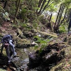 Am Nachmittag hielten wir immer wieder mal an, schauten uns Bächlein an und fuhren weiter, weil es uns irgendwie zu wenig Potenzial hatte. Dazu kam, dass ich elend langsam unterwegs war und gleichzeitig überall ausrutschte, wo es nur ging. Irgendwie schienen meine Schuhsohlen neuerdings ultimativ rutschig zu sein.