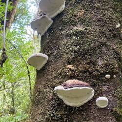 Es gibt hier diverse Biketrails, die durch ein schönes Regenwaldgebiet führen. Wir liefen zuerst diese ab, dann gingen wir noch etwas die Strasse runter, wo wir einen weiteren Weg auf der Karte gesehen hatten, allerdings existierte dieser in Wirklichkeit gar nicht mehr. Inzwischen etwas müde, kehrten wir also um, nahmen noch einen kurzen Wanderweg mit, der sich letztes Jahr bei Starkregen sehr lange angefühlt hatte und kamen gegen 17.00h zurück zum Campingplatz, der inzwischen recht viele Besucher aufwies.