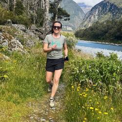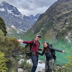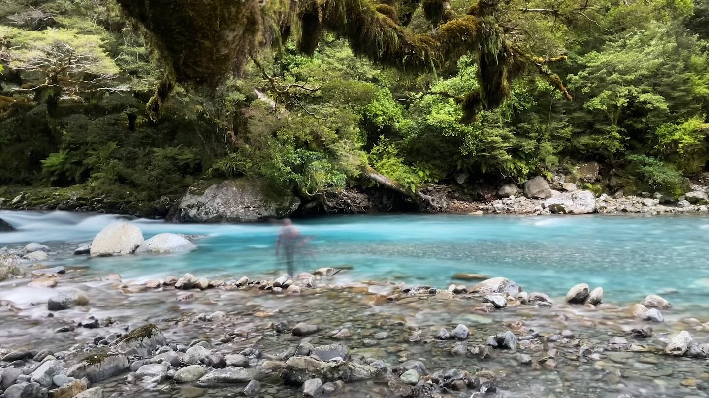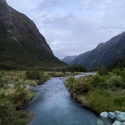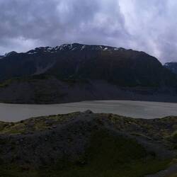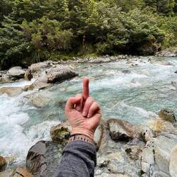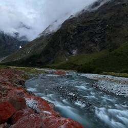 Iiirgendwann kamen wir ENDLICH beim See an. Dieser sah echt schön aus. Er hatte eine tolle blaue Farbe, rundherum hatte es Berge, von welchen Wasserfälle runterkamen. Grundsätzlich ein echt schöner Ort. Leider waren meine Kräfte am Ende und es gab keinen Weg rund um den See und auch von weiter oben sah man nicht den ganzen See. Frustrierend, dass hier keine Drohnen erlaubt sind! Habe ich schon erzählt? Die Park-Ranger fahren hier mit Antennen herum, um illegalle Drohnenflieger zu fassen und mit 800 NZD Busse zu belasten!