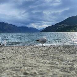 Simi war irgendwann fertig. Ich kam kaum den ersten kleinen Hügel runter… Unten beim See schoss er nochmals ein paar Fotos. Ich schaute mir mit 2 Amerikanern eine Vogelmama an, die ihre Jungen mit frischem Fisch versorgte. Ich weiss immer noch nicht, wie dieser braune Dreamstealer-Vogel heisst. Ich schätze, Kaka, bin jedoch nicht sicher. Auf keinen Fall ist das ein Kea, wie die Amerikanerin mir weismachen wollte. Keas fliegen und sehen aus, wie urwaldgrüne Papageien mit Orangen Flügeln.