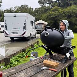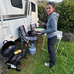 Inzwischen war Simi wach und so bereitete ich nochmals Crêpes und Kaffee zu, bevor wir aufbrachen in Richtung New Plymouth. Unser geliebtes Wacaco (Espresso-Macher für unterwegs) hatte heute nach etwa 10 Jahren Betrieb seinen Dienst verweigert und wir hofften, einen neuen Aufsatz zu finden.