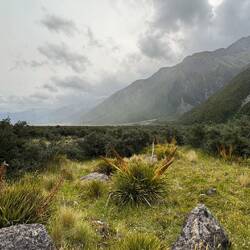 Nach der stürmischen Nacht erwachten wir beide erst spät, aber wir hatten sowieso keine Eile, um wieder nach Aoraki zu fahren. Es regnete in Strömen und man hatte nullkomanull Sicht nach irgendwo.