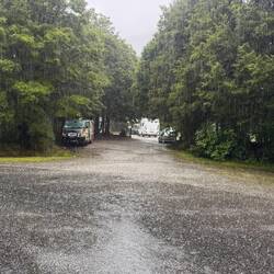 BÄÄÄÄÄÄÄÄNG!!!!! Simi und Thesi sind erneut hellwach. Ein Blitz muss in nächster eingeschlagen sein. Es donnerte in einer echt grossen Lautstärke, der ganze Boden vibrierte sekundenlang, dann begann wie aus dem Nichts ein Starkregen, der donnernd auf unser Autodach schlug.