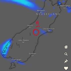 Leider fanden wir nichts und gaben irgendwann frustriert auf. Wir setzten uns in die Sonne und versuchten, irgendeinen Plan für die nächsten Tage zu schmieden, doch der sehr schwache Internetempfang verunmöglichte es weitgehendst. Das einzige, was wir sahen, war eine neue, riesige Regenmasse, die sich in Richtung nördlicher Südinsel drängte und auch unseren Plan B vernichtete.