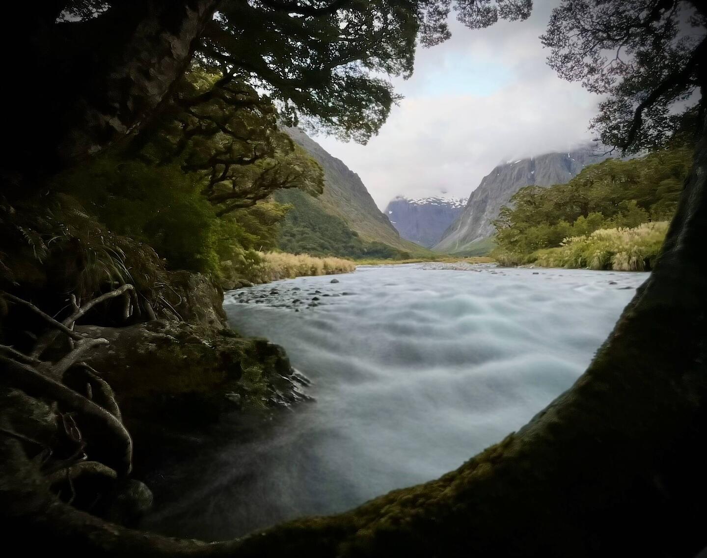 Auf der Milford Route tuckerte ein Chinesen-Camper vor sich hin und trieb uns schier in den Wahnsinn, weil wir nicht überholen konnten und die Zeit knapp war. Glücklicherweise ergab sich doch noch eine Möglichkeit und wir schafften es doch noch rechtzeitig zu unserem Spot.