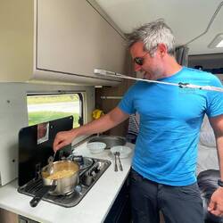 Wir stellten unseren Camper auf den danebenliegenden Parkplatz und machten es uns wieder gemütlich. Ich kochte Knöpfli für den Abend, Simi sah sich seine Fotos durch und bearbeitete das eine oder andere.