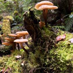 Nach der Brücke folgte erst einmal ein wuuunderschöner Wald. Also so von der Sorte „Nicht von dieser Welt“ schön. Alles war moosbewachsen. Verschiedene Moose stritten sich um das schönste Aussehen, dazu kamen überall Pilze, die einfach nur toll aussahen. Echt, ich HASSE Pilze, bitte füttert mir sowas nicht, aber zum Anschauen waren die Dinger echt toll. Bei einem umgestürzten Baum musste ich sogar ein Foto mit der Kamera schiessen. Die Pilze waren so wunderbar eingerahmt von diesem alten Holz. Es sah einzigartig aus!
