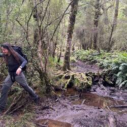 Wir wanderten weiter, jedoch wurde die Wanderung nach einer Weile jäh unterbrochen. Vor uns war ein ziemlich reissender Fluss und am anderen Ufer war ein Pfeil, auf welchem Stand „Track“. Nope, Wanderung fertig. Kein Seil, kein gar nichts und ein reissender Fluss? Zu gefährlich.