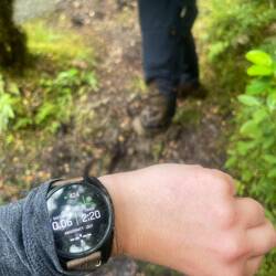 Der Weg startete ziemlich langweilig, weil er praktisch bis zur Kinderwagentauglichkeit hergerichtet war. Wir fanden schlussendlich eine Abzweigung, die etwas abenteuerlicher aussah. Es handelte sich erneut um einen Mountainbike-Trail, der allerdings sehr rutschig und aus meiner Sicht schwierig zu befahren war.