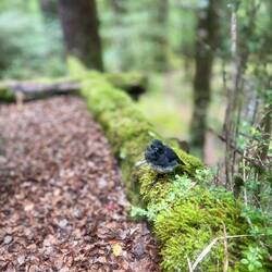 Nach einer Weile kamen wir zu einer Lichtung, wo wir mit einem Warnschild begrüsst wurden „Falcon attacks!“. Oje.. wir sahen keinen Vogel und dachten, es sei vermutlich ein älteres Schild oder der Vogel hätte aktuell frei. Wir kamen zur nächsten Lichtung, da sass er und starrte uns böse an. Er fing an zu schreien, aber wir ignorierten ihn und liefen, mit dem Stativ in der Hand bewaffnet, weiter. Und dann flog er uns vermutlich hinterher, denn seine Schreie wurden lauter und klangen wesentlich böser und näher als bisher. Ich rief Simi zu „Renn in den Wald!!“. Was für ein bösartiger Vogel! Wir kamen ihm nicht mal nahe, der Kerl ist wohl einfach nur ein unzufriedener, merkwürdiger Vogel…!