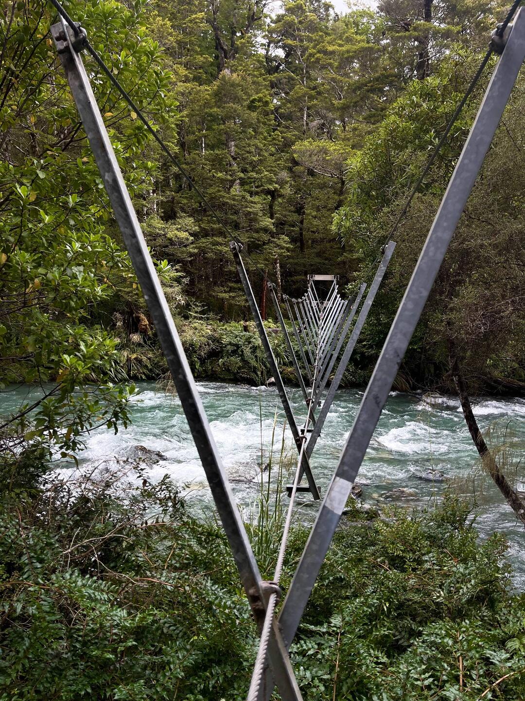 Der Boden war überall völlig durchtränkt und der Weg an einigen Stellen ziemlich überschwemmt. Der Weg über die Hängebrücke war nicht wirklich angenehm. Unter uns tobte eine riesige Wassermasse, die Brücke schaukelte, der Holzboden war rutschig.. Nein, nicht angenehm.