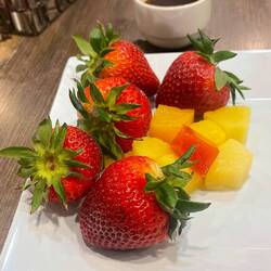 Frühstück gab es wiederum auf unserer tollen Terrasse: Spiegeleier mit feinsten Erdbeeren :-)
