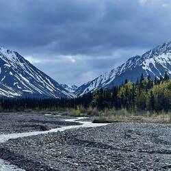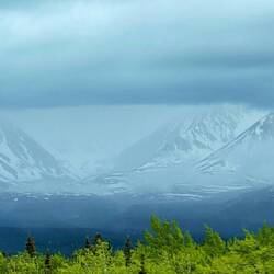 So gegen 15.30h fuhren wir los in Richtung Icefield Discovery, wo wir für 18.00h einen Rundflug gebucht hatten. Es regnete weiterhin in Strömen und sah weit und breit nicht nach einer Wetterverbesserung aus.