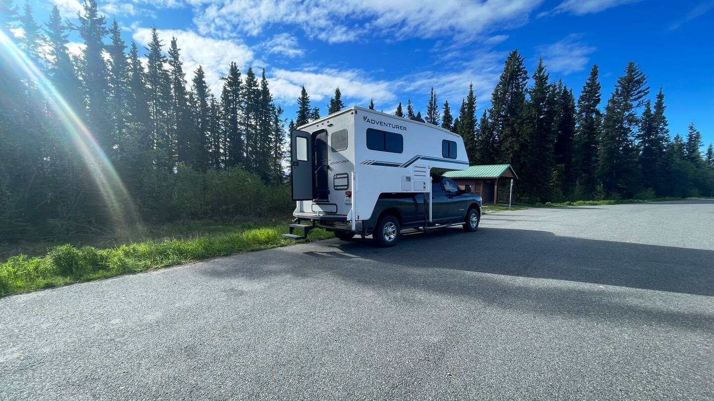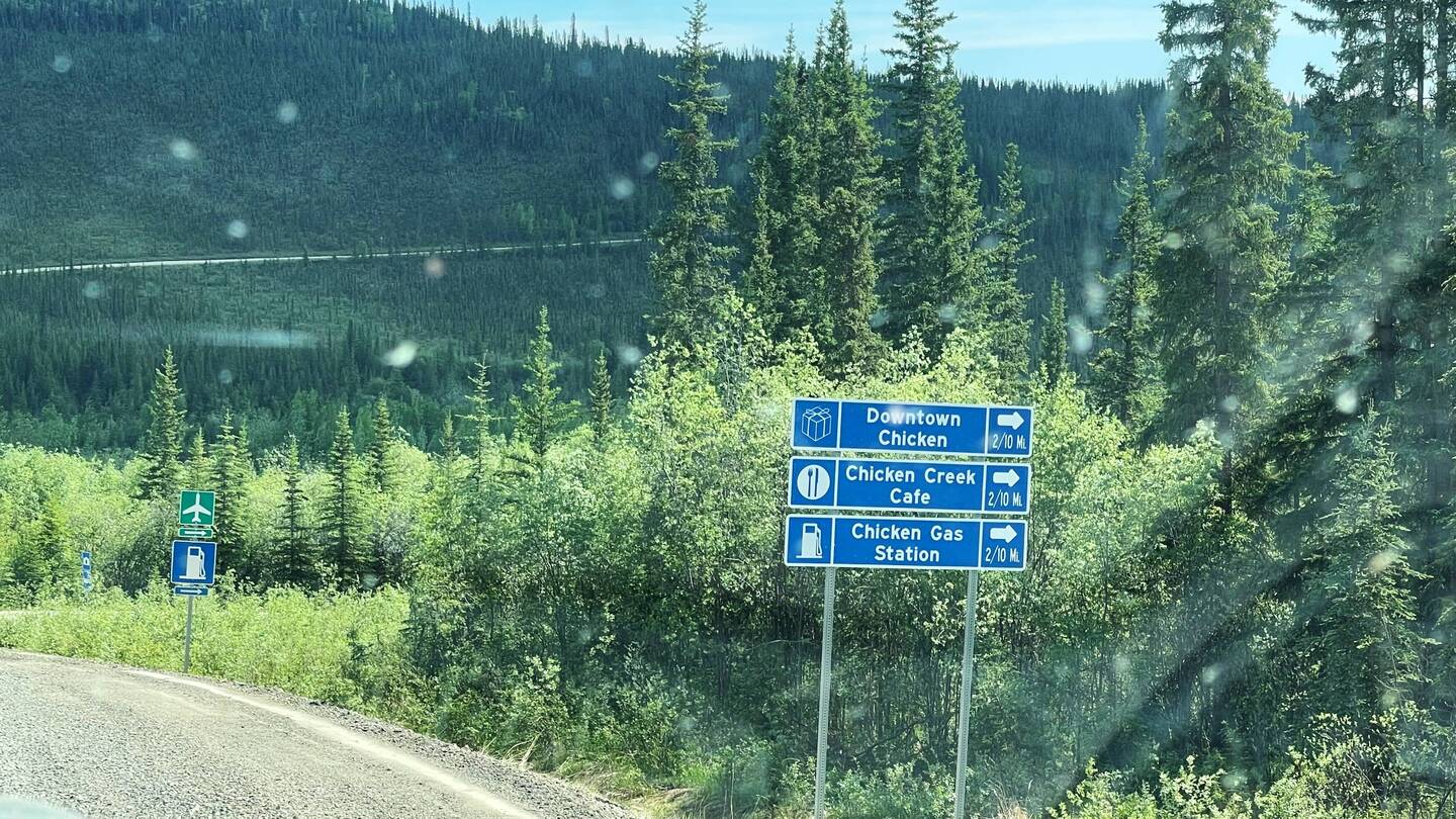 Die Dame am Zoll kontrollierte unser Nummernschild und kam dann zu uns. Sie fragte, wie lange wir so bleiben werden, wann wir Kanada endlich wieder verlassen und „What happens/ed to your camper?!?“. Simi erstarrte, weil er meinte, durch die wellige Strasse hätten wir uns eine riesige Delle oder ähnliches eingefangen. Er hatte verstanden „What happenED to your camper?!?“. Zum Glück hatte ich eine andere Frage verstanden und so konnte ich ihr versichern, dass das Fahrzeug natürlich in Whitehorse zurückgegeben wird. Ich musste so lachen ab dem Missverständnis :-P