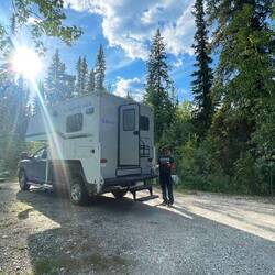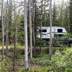 Schlussendlich landeten wir kurz vor Stewart Crossing auf einem Campingplatz. Wir dachten, solange das Wetter gut ist, sollten wir es auch geniessen. Die Governmentplätze kosten wenigstens nur 20 CAD pro Nacht, was wir mehr als vertretbar empfinden. Man hat einen tollen Platz mit Picknicktisch und Feuerstelle (macht leider weniger Spass, wenn es nicht dunkel wird).