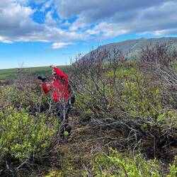 Nach dem Wald kam eine ziemlich grosse Steigung, mitten durch tausende Heidelbeersträucher. Wir waren froh, dass diese noch keine Früchte trugen. Wären daran schon Beeren gehangen, hätte es wohl von Bären nur so gewimmelt..