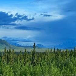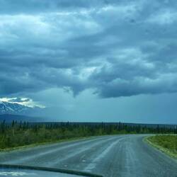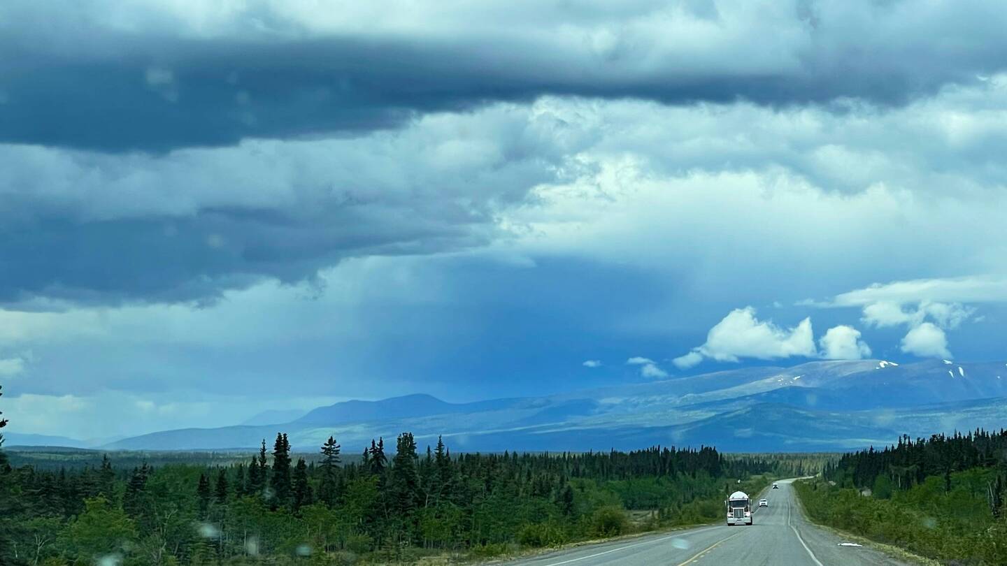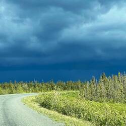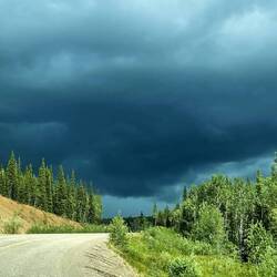 Wenigstens sollten wir so nicht allzu spät in Whitehorse ankommen. Wir fuhren los, um uns herum zogen erneut Wolken und Gewitter auf. Der Himmel war teilweise nahezu schwarz. Es blitzte und donnerte um uns herum. Wir waren schlussendlich froh, dass wir nicht weitergeflogen sind. Ich hätte Todesängste gehabt, wenn wir mit so einem kleinen Flugzeug in ein Gewitter geraten wären.