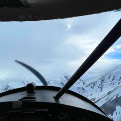 Wir sahen sehr viele Bergschafe, die sich in der Höhe von den vielen Bären in Sicherheit brachten, überflogen tolle Gletscher, jedoch endete der Flug abrupt, als wir uns plötzlich in einer riesigen Wolke befanden. —> White out.. Wir mussten umkehren und gaben unser Vorhaben, einen längeren Flug zu machen auf.