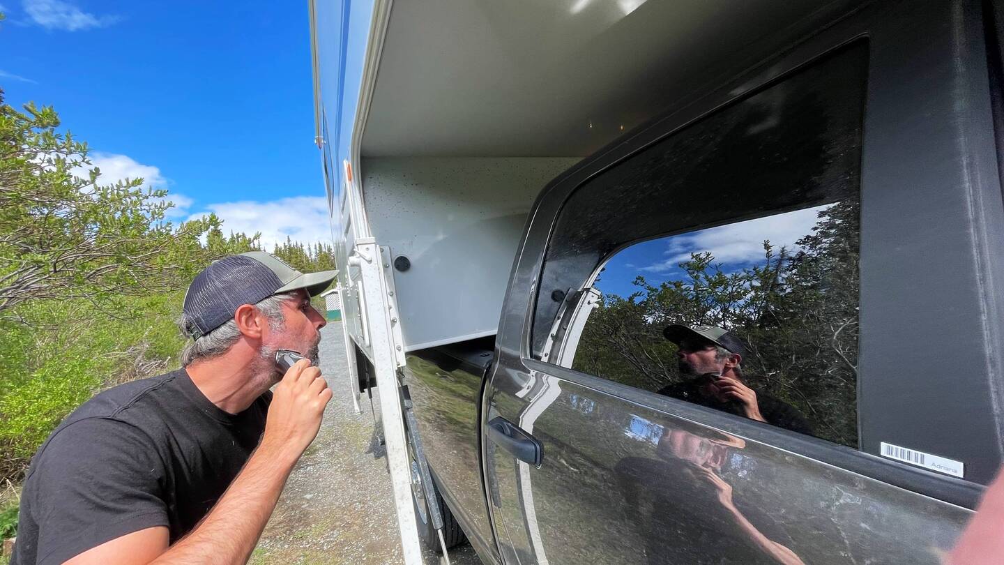 Ich kochte uns Kaffeewasser auf und heizte das Wasser vor, damit wir duschen konnten. Wir hatten es alles andere als eilig. Für die kommenden Tage haben wir keinerlei Plan, wohin wir fahren und was wir machen sollen. Stattdessen breitet sich ein Frust in uns aus, weil die Meilenlimitierung uns jeglichen Seelenfrieden raubt. Es ist wirklich mühsam, wenn man mit jedem Kilometer nur die Kasse von GoNorth klingeln hört und denkt, wir hätten den Camper auch gleich kaufen können.