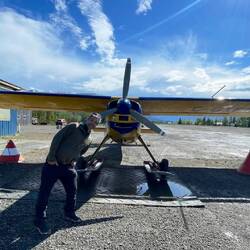 Nach diesem langwierigen Prozess wollten wir bei einer Tankstelle in Whitehorse unser Fahrzeug tanken und Propan auffüllen lassen, was ein Umweg von total 30min war. Wir wurden beide immer nervöser, weil wir Angst hatten, den Flug zu verpassen. Als wir für das Propan auch noch ewig hätten warten müssen, weil vor uns noch jemand anderes dran war, haben wir schlussendlich GoNorth angerufen und gefragt, wie viel es kosten würde, wenn man die Flaschen leer abgibt. Wir haben uns für letzteres entschieden. Ein verpasster Flug wäre teurer gewesen..