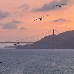Über SFO zeigte sich ein wunderschöner Sonnenuntergang und wir rannten hin und her, in der Hoffnung, den Moment festhalten können.