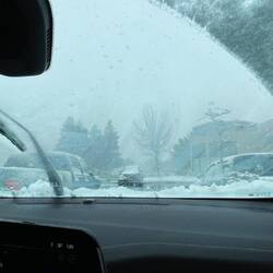 Wir fuhren zurück zur Pizzeria und assen zuerst mal im Warmen, bevor es wieder raus in die Kälte ging. Bevor wir losfuhren, musste ich noch unser Essen anders verstauen. Ich sah aus wie ein Schneemann und auf unserem Auto hatte sich innert 1h ca. 5-10cm Schnee angesammelt!