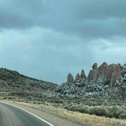 Als wir aus dem Laden rauskamen tobte draussen Schneesturm. Es schneite bereits als wir in Cedar City angekommen waren, aber nun war es so schlimm, dass man kaum mehr aus den Augen sah.