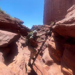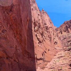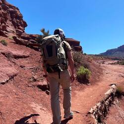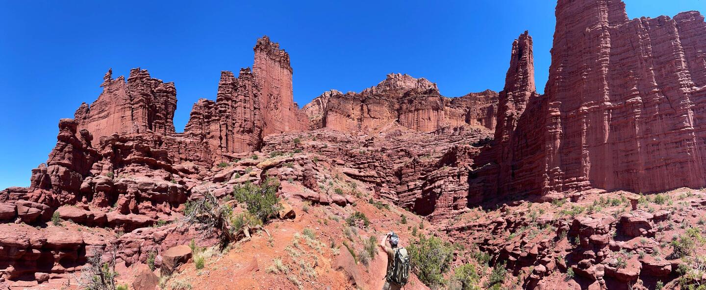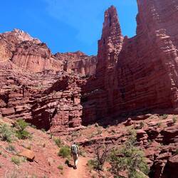 Die Wanderung führte uns über mein geliebtes, rotes Sandsteingebiet, entlang von steilen Klippen und Steintürmen. Wunderschön!