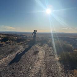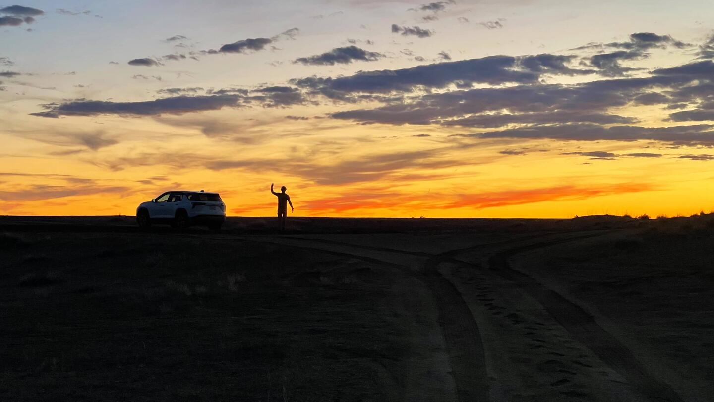 Nach dem CheckIn fuhren wir zu unserem Fotospot, wo wir bis zum Sonnenuntergang hin- und herliefen und den besten Platz suchten, um die Drohnen steigen zu lassen. Ich glaube, wir haben neben sehr vielen versteinerten Baumteilen sogar einen Dinosaurierknochen gefunden (und dort gelassen)🤗