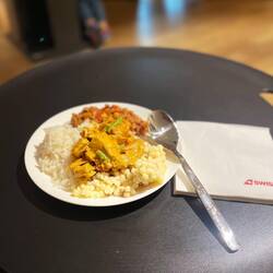 Nach dem Einchecken machen wir es uns in der Lounge gemütlich, nachdem wir uns die letzten akzeptablen Platz ergattert hatten. Etwas ärgerlich ist - wir haben beide helle Hosen angezogen und auf dem Speiseplan steht Thaicurry —> Hallo Flecken!!